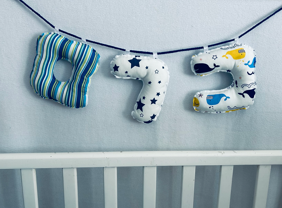 אותיות בד לתליה דגם כחול - צהוב